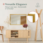Elevate your home or office decor with the Hamilton Hills 30 x 40-inch black framed wall mirror, designed to bring simple sophistication to any space. This large rectangular mirror features a premium floating glass panel that appears to float within a thin 1/8-inch gap inside a 2-inch thick black frame, creating clean and modern edges that complement contemporary interiors. The mirror is crafted with authentic silver-backed glass securely mounted on a solid wood frame, providing stability and durability. Its versatile design allows for easy installation in either horizontal or vertical orientation using the included reinforced D-ring hanging clips and hardware. Perfect for bathrooms, bedrooms, dining rooms, hallways, living rooms, or offices, this mirror adds both functional reflection and stylish appeal. The industrial-grade construction ensures it withstands high-traffic areas without warping or distortion. With over four generations of craftsmanship behind it, this mirror represents affordable quality from an American family-owned company committed to excellence.