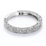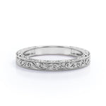 [Embellish her finger with this Vintage Filigree Wedding Band - Milgrain Edge - in 18k White Gold Plating over Silver. Special and non-traditional this vintage filigree wedding band is well-suited for those who are not quite into normal lifestyle. This vintage filigree wedding band will enhance happiness and attract positive vibes. This vintage silver wedding band is beautiful and accessible since it is available at an affordable price. For those who have no idea what to surprise your life partners this best gorgeous wedding band can definitely help you out. Also this vintage filigree wedding band can be customized so customers can choose one of metal colors between 18K white gold plating over silver 18K rose gold plating over silver 18K yellow gold plating over silver and 18K black gold plating over silver. Let s fulfill your love story with this vintage filigree wedding band and surely she will not regret it.]