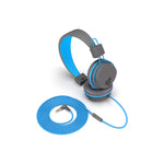 JLab JBuddies Studio Over Ear Folding Kids Headphones Comfort for home or school. Style to suit any budding fashionista. JLab's Over Ear Cloud Foam cushions offer ultimate comfort for homework session focus without the rock star price tag. The smooth sliding metal adjustments and feather light build give you the long lasting, all day comfort you require. They'll be their favorite wearable accessory. JBuddies offer safe volume control through vigorous testing and built in volume regulators to ensure kids never rock out past 85db. Trust that young, sensitive ears aren't damaged. Built for all growing shapes and sizes, the smooth sliding metal adjustments and feather light build are ready to hit the road or use in class for ages 6 16. The plush circular ear cups rotate 80 degrees and fold up in the palm of your hand so they can fit snuggly in any backpack.