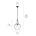 The Everly 19.75" one light bell shaped pendant comes with a curved, glass blown container featuring clear, seeded glass and an Olde Bronze finish for a simple and elegant look. The Everly's versatile design coordinates with a variety of styles and can be used singularly, in multiples or arranged at varying heights to elevate the room. Cleaning instructions: Turn off electric current before cleaning. Clean metal components with a soft cloth moistened with a mild liquid soap solution. Wipe clean and buff with a very soft dry cloth. Under no circumstances should any metal polish be used, as it is abrasive nature could damage the protective finish placed on the metal parts. Never wash glass shades in an automatic dishwasher. Instead, line a sink with a towel and fill with warm water and mild liquid soap. Wash glass with a soft cloth, rinse and wipe dry.
