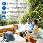 The Lasko Misto 7054 Outdoor Misting Blower Fan is engineered to provide exceptional cooling comfort during hot summer days. This versatile fan utilizes a hose hook-up to generate a fine mist of water that effectively reduces the surrounding air temperature by as much as 25 degrees. Built with outdoor durability in mind, it is weather, UV, and rust resistant, making it ideal for use on patios, decks, or at sporting events. The fan features a 9-foot water hose that easily connects to any standard garden hose, allowing for hassle-free setup without the need for tools. With three refreshing speed settings and automatic louvers that create a wide sweep of air, you can customize your cooling experience. The pivoting head allows you to direct the mist flow exactly where you need it most. Safety is paramount with an in-line GFCI cord that ensures secure operation. Enjoy the convenience of easy maintenance with a misting kit that detaches without tools. Experience outdoor comfort like never before with the Lasko Misto Outdoor Misting Blower Fan.