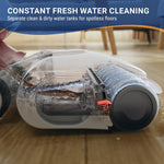 The Tineco LiteVak Wash revolutionizes floor cleaning with its innovative 3-in-1 design that vacuums, mops, and self-cleans, making it an ideal solution for busy households. This corded electric upright cleaner efficiently handles both wet spills and dry debris in a single pass, eliminating the need for multiple tools and reducing cleaning time. Its dual-tank system features extra-large tanks that are twice the size of previous models, allowing longer cleaning sessions with fewer refills. The intelligent separation of clean and dirty water guarantees fresh water is used every time for spotless results. Equipped with a fast-scrubbing microfiber brush, it removes stubborn dirt and grime while leaving floors polished and streak-free. The enhanced brush design cleans right up to baseboards and walls where dust accumulates. After use, the self-clean mode flushes the brush roller and internal tubes automatically for easy maintenance. With a generous 25-foot cord providing extended reach across multiple rooms and a complete starter kit including a microfiber brush, filter, cleaning solution, and storage dock, the LiteVak Wash offers comprehensive floor care for sealed hard surfaces such as laminate, hardwood, tile, and vinyl.