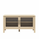 Introducing the Mainstays Glass Door TV Stand - where simplicity meets modern elegance. Designed to accommodate TVs up to 55", this sleek stand effortlessly elevates your entertainment space. With its minimalist aesthetic and clean lines, it seamlessly blends into any contemporary décor. The standout feature of this TV stand lies in its glass door cabinets, offering a stylish showcase for your media essentials while keeping them dust-free. Equipped with four shelves, two of which are adjustable, you have the flexibility to customize the space to suit your personal preferences. Constructed from laminated engineered wood and MDF, this TV stand offers the assurance of a stable surface for your television, providing peace of mind. Whether it's displaying your media devices, storing DVDs, or showcasing décor accents, this TV stand provides both style and functionality in one chic package. Upgrade your living room with the Mainstays Glass Door TV Stand and redefine your entertainment experience with sophistication and simplicity. The Glass Door TV Stand requires assembly upon delivery. Once assembled it measures to be: 23"H x 47.5"W x 15.7"D.