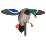 Maximize that MOJO magic in your duck spread with the MOJO Outdoors Baby MOJO Motorized Duck Decoy. Offering duck hunters all of the effectiveness of the MOJO Mallard decoy in a smaller package, this decoy offers the same lifelike motion of a landing or lofting duck to draw in cagey greenheads. A great choice for late season use in front of decoy-weary ducks, the Baby MOJO combines vibrant colors, fantastic texture, and an iridescent head for a truly realistic look. Its dual-shaft, direct-drive motor spins the magnetically connected PVC wings for that special, eye-catching flash and true-to-life motion that sets these decoys apart. Comes with 4' support pole, rechargeable 6V battery, wall charger, adapter, external charging port, noise-eliminating battery bracket, and remote receiver plug.