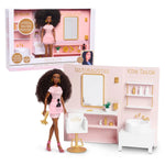 Introducing the Naturalistas ICON Salon Playset, a historic new addition to the Naturalistas line, inspired by and celebrating the iconic culture of beauty salons! Located at the heart of ICON Village, ICON Salon is where all the Naturalistas come together. The ICON Salon Playset reflects the elevated style of the brand and offers complete imaginary play with the inclusion of an exclusive Dayna doll. Dayna is an LA native and owner of ICON Salon. With a degree in business and training from a top beauty school, she is a leading Natural Hair stylist. A businesswoman and celebrity favorite, Dayna’s much-admired career has earned her the nickname, “The Coil Whisperer.” Dayna features 5-points of articulation for lots of creative poses, long voluminous curly 3C textured hair and medium brown skin tone. She wears a pink mini dress with matching apron, gold hoops and strappy heels.