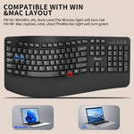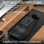 The RECCAZR wireless keyboard and mouse combo is designed for extended use with ergonomic features that promote comfort and efficiency. The keyboards wave keys layout allows easy finger access and supports a natural typing posture, reducing hand fatigue during long work sessions. Its cushioned palm rest further alleviates wrist pressure, enhancing overall comfort. The wireless mouse complements the keyboard with a contoured shape and rubber side grips tailored for medium to large hands, providing smooth movement and reduced strain. Both devices connect seamlessly via a single nano USB receiver operating on a stable 2.4 GHz frequency with up to 10 meters of wireless range. Constructed from recycled plastic materials, this combo supports sustainable use while delivering reliable performance. The keyboard offers up to 3 years of battery life, while the mouse provides up to 2 years using included batteries. Compatible across Windows XP through Windows 11 and Mac OS systems, this set is ideal for desktops, laptops, and PCs requiring efficient wireless input solutions.