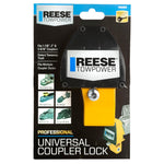 The Reese Towpower Professional Universal Coupler Lock has a unique patent pending design that protects against trailer theft and a square key design that resists picking. This lock is constructed of cast steel material and a premium corrosion resistant finish, fits 1-7/8 inch, 2 inch & 2-5/16 inch couplers and multiple coupler styles with it's easy slide installation. REESE is the market leader in automotive and recreational product solutions, engineered and designed to meet the demands for work and active lifestyles. REESE Towpower pioneered the technology that has set the standard for today's most advanced towing systems. We cater to the towing needs of everyone from recreation enthusiasts to heavy-duty agriculture users by manufacturing the largest selection of receiver hitches; ball mounts and hitch balls; trailer and hitch locks; couplers, jacks and winches; and electrical and lighting components that meet and exceed industry standards.