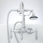 Signature Hardware RL-402-ML-C Gooseneck Tub Faucet with Hand Sprayer and Metal Lever Handles - Chrome. Showerhead and escutcheon to be made of brass plate.