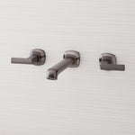 Perfect for those looking for an easy-to-clean yet stylish solution, the Sefina Wall-Mount Bathroom faucet elevates any space. Its modern, angular design features two metal lever handles that control the water temperature and pressure. Choose your favorite finish to complement your space.