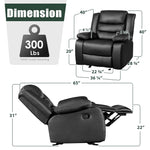 Experience ultimate relaxation with the TrumanPick Manual Recliner Chair, designed for comfort and durability. Upholstered in premium faux leather, this oversized recliner features a solid wood frame reinforced with a heavy-duty steel mechanism capable of supporting up to 350 pounds. The ergonomic design includes contoured backrests and wide padded seats that provide optimal support for long periods of sitting. The chair offers dual functionality: it rocks smoothly back and forth while also reclining up to 160 degrees via an easy-to-use manual handle. A full chaise pad between the seat and leg rest supports your legs comfortably, while deep cushioning on the leg rest alleviates pressure on your lower body. This versatile recliner is perfect for various settings such as living rooms, bedrooms, home theaters, offices, or waiting rooms.