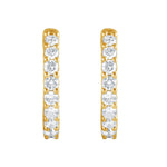 Crafted for the modern woman who values both style and ethical sourcing, these Unique Moments huggie earrings showcase 1/2 carat total weight lab-grown diamonds with a round brilliant cut, J color, and SI1 clarity. The diamonds are set in premium sterling silver enriched with a luxurious yellow gold plating that adds warmth and timeless appeal. Featuring secure friction backs, these earrings ensure comfortable wear throughout the day. Ideal for bridal parties, anniversaries, or elevating everyday looks, they combine enduring beauty with responsible craftsmanship. The prong setting highlights each diamond's sparkle while maintaining durability. These earrings complement a wide range of ensembles from casual to formal, making them a versatile addition to any jewelry collection.
