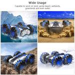 Our multi-functional RC car can work great on land and water with 360-degree spin and flip, which is easy to operate with 4-wheel drive system. The high-quality RC car, which is made of solid ABS, will give you a thrilling and unforgettable driving experience.