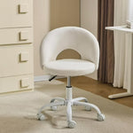 VINGLI Small Vanity Table with Wheels for Girls. Modern Height-Adjustable Armless Office Desk Chair. Comfortable 360 Swivel Wheeled Chair for Study, Makeup Room, Small Space, White Linen